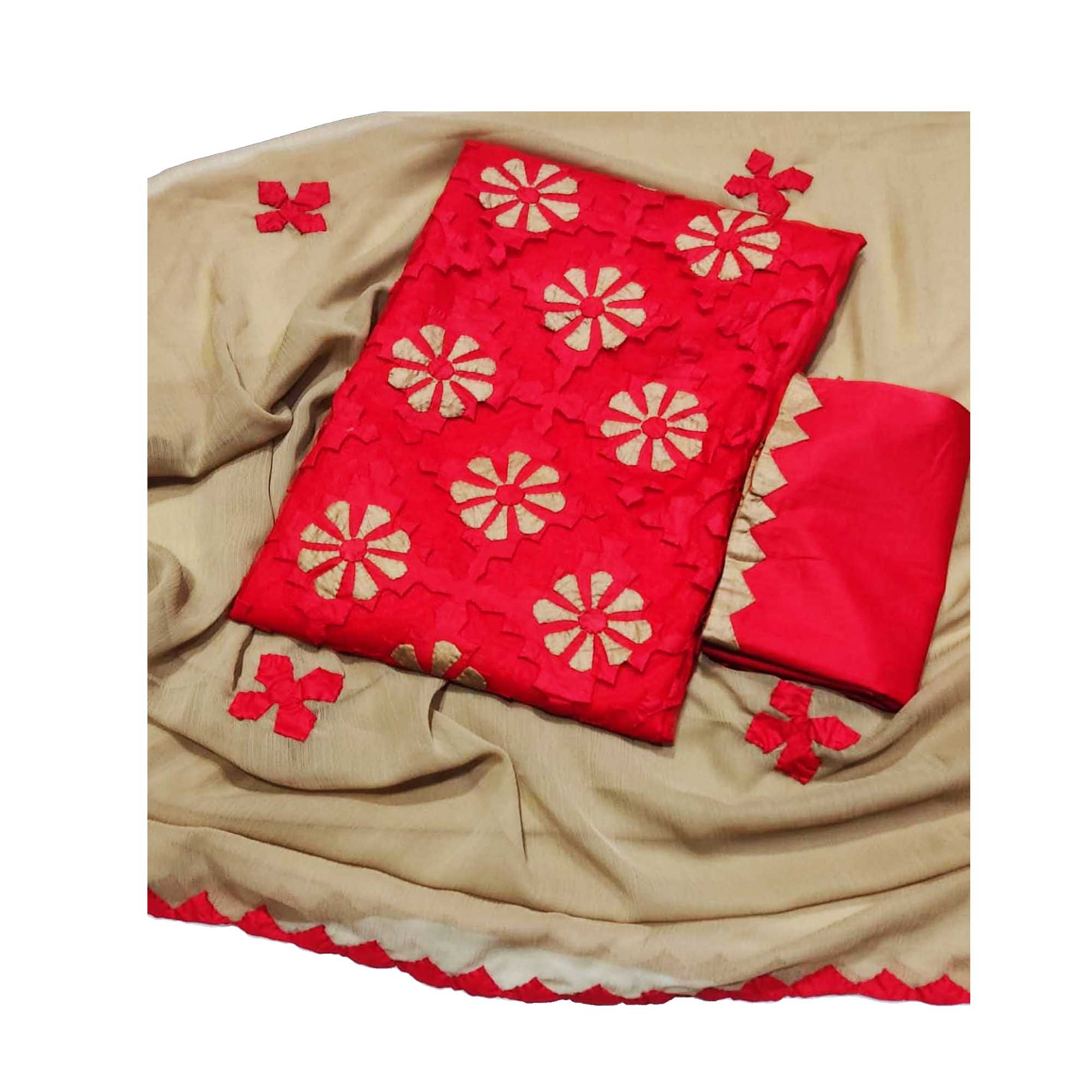 Flower Applique Handmade 3pc Unstitched Suit-SR