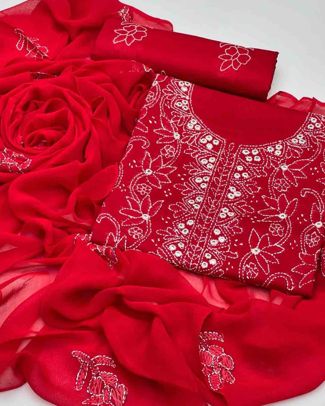 Hand Embroidered Booti Work 3pc Dress