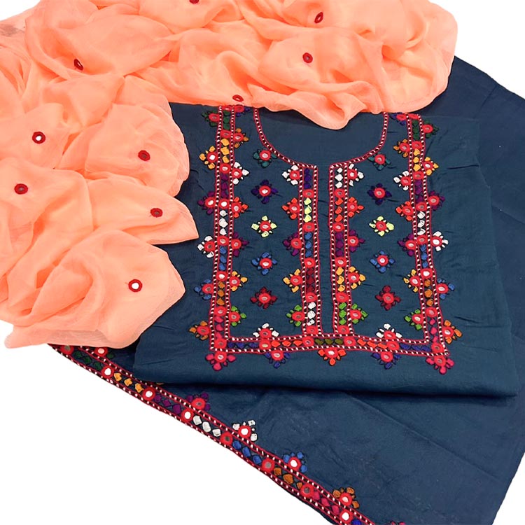 Hand Embroidered Needled work 3pc Suit- Navy Blue