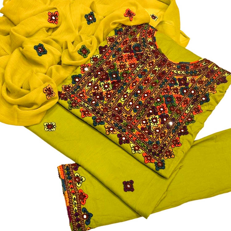 Hand Embroidered Needled work 3pc Suit- Parrot Green