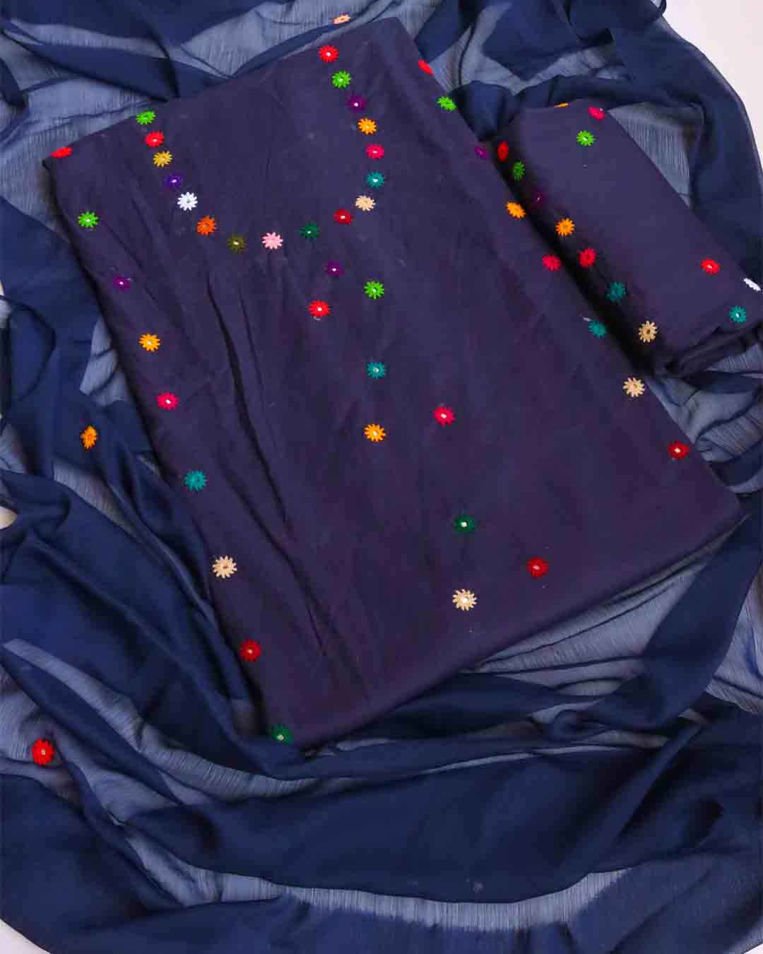 Discover the timeless elegance of our 3-piece unstitched Sindhi dress. Crafted by skilled Sindhi artisans, this suit features the intricate and famous Hurmicho pattern. The detailed and time-consuming embroidery showcases the rich heritage and artistry of Sindhi craftsmanship. Perfect for any occasion, this unstitched suit allows for personalized tailoring to fit your unique style. Order now and experience the beauty of Sindhi dress traditions.