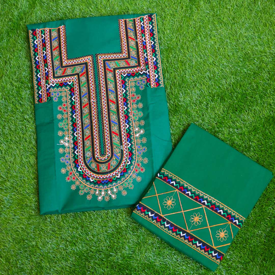 Soomro Embroidery Black 2pc Unstitched Suit-Green